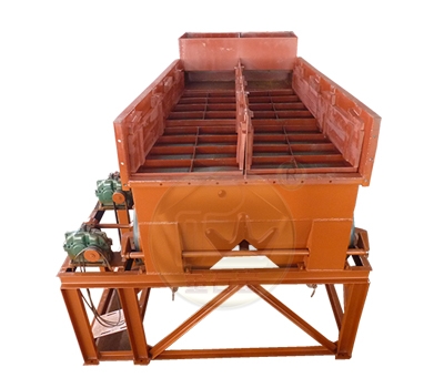 2LTC6109-8T梯形跳汰机,该机横截面为梯形,沿着矿流方向由窄变宽,矿浆流速逐渐减缓,特别有利于细粒重矿物回收。整机由8个跳汰室组成,分成两列,每列4室,各室冲程冲次可单独调节,组成不同 的跳汰制度。该跳汰机的的两列1-4室与5-8室中间隔断,用螺栓连接起来形成一个整体。结构为可拆卸形式。以便于运输和搬运。其结构 简单,维修方便,运转稳定,已在金、钨、锡、铁、锰、钛等重选厂广泛应用。