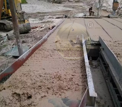 分料机构,分料平均,自动关闭逆流转动的回收带的带面供料。供水系统,自动供给逆流转动的回收带,上端底面喷水,洗洁带面草花内的金属矿,导流入回收槽内。带内喷水冲洗带内 渗入的沙浆,保证带内清洁。