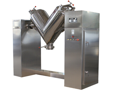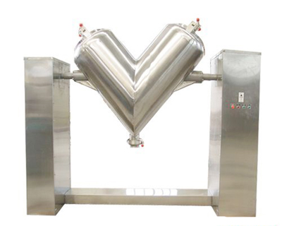 It consists of two cylindrical barrels which shaped An V. When the barrel rotates, material would combine from separation.
