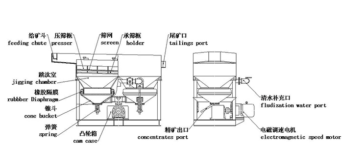 我司推出的改进型JT2-2锯齿波跳汰机广泛应用于选金,选矿船上的粗选,扫选和精选作业,其组合使用有效的节省了占地空间,提高了选矿效率。改进JT2-2A、JT4-2A型锯齿波大颗粒跳汰机,给矿粒度小于60mm,采用筛上排矿,应用于重晶石矿、锰矿、铁 矿等大颗粒矿石的选矿。