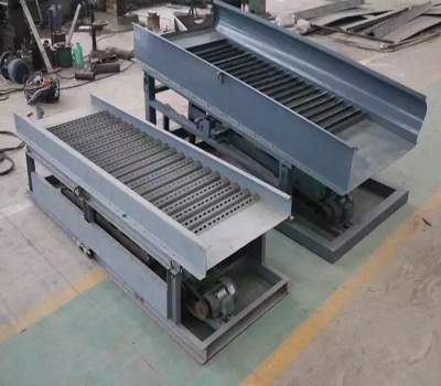 3、原先的固定式溜槽是用淘金毡提金,由于溜槽板结、淤槽等现象,淘金毡提金的净选率只有30%左右这些缺点,鼓动溜槽有针对性的进行了克服。
