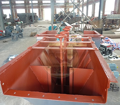 矿浆由一侧给入,依次进到各室中,各室的上升水速逐渐减小,由此得到由粗到细的各级产物。分级室内上升水速分布是否均匀对分级效果有重要影响。减小筛孔并相应增加筛孔数目可在一定程度上改善效果。但水速分布不均是难免的。由此引起二次回流搅动效率不高的重要原因。